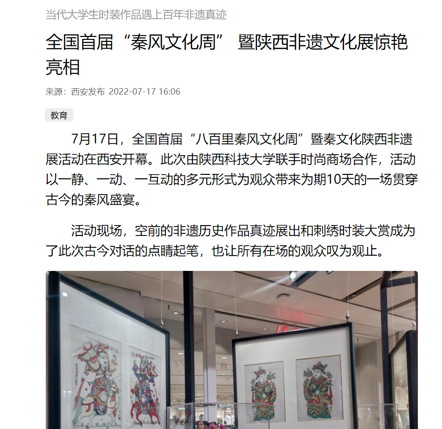近日,西安發(fā)布報(bào)道我校聯(lián)手時(shí)尚商場(chǎng)舉辦全國首屆“秦風(fēng)文化周” 暨陜西非遺文化展。