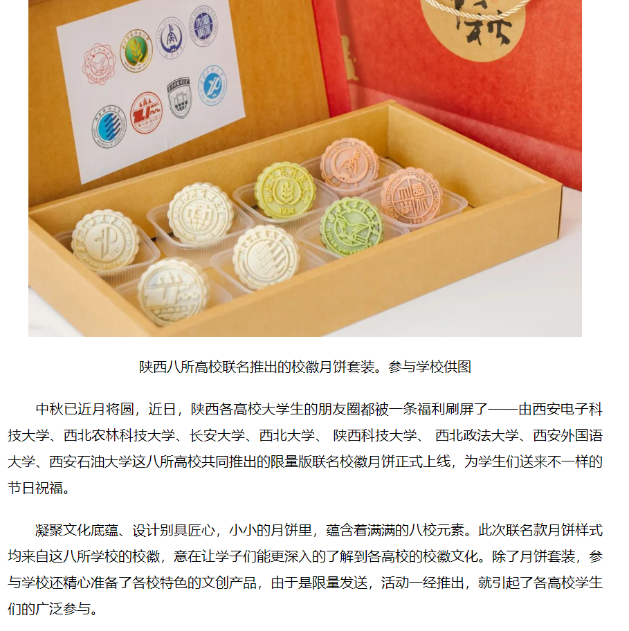 陜西頭條:視頻丨母校的月餅?zāi)鉭et了嗎?陜西八所高校推出聯(lián)名?;赵嘛?/a>
