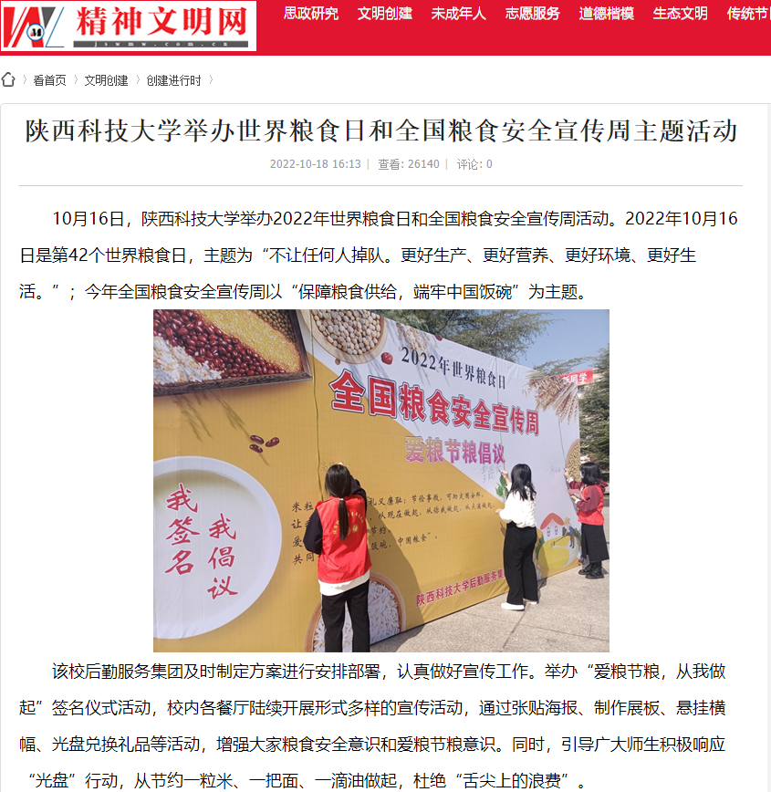 精神文明網:陜西科技大學舉辦世界糧食日和全國糧食安全宣傳周主題活動