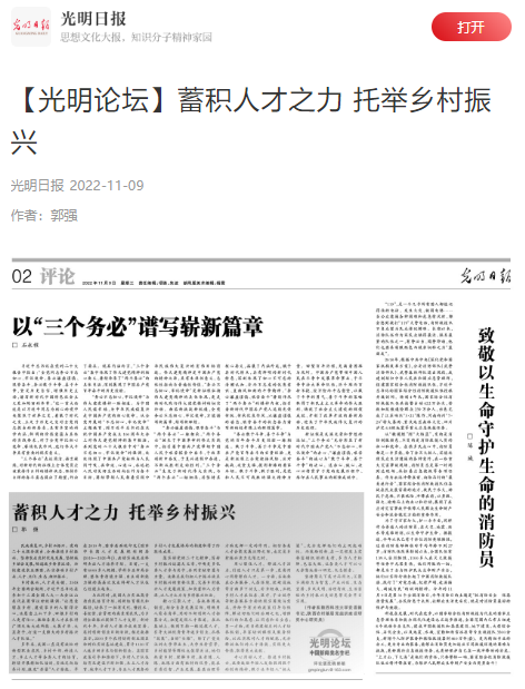 《光明日報(bào)》:蓄積人才之力 托舉鄉(xiāng)村振興