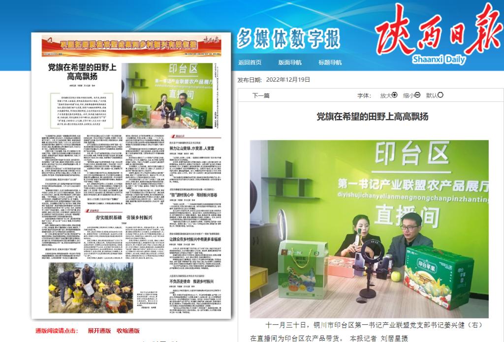 《陜西日?qǐng)?bào)》報(bào)道印臺(tái)區(qū)第一書記產(chǎn)業(yè)聯(lián)盟發(fā)起人、我校派駐王石凹村第一書記姜興健當(dāng)好鄉(xiāng)村振興“領(lǐng)頭雁”事跡