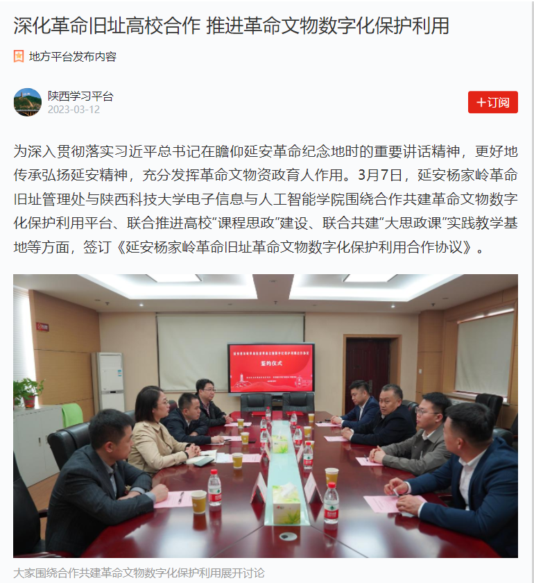 近日,學(xué)習(xí)強(qiáng)國、秦聞報道我校攜手楊家?guī)X革命舊址推進(jìn)革命文物數(shù)字化保護(hù)利用。