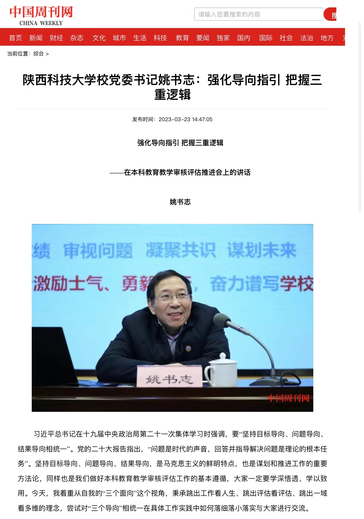 青塔官網(wǎng):陜西科技大學校黨委書記姚書志:強化導向指引 把握三重邏輯