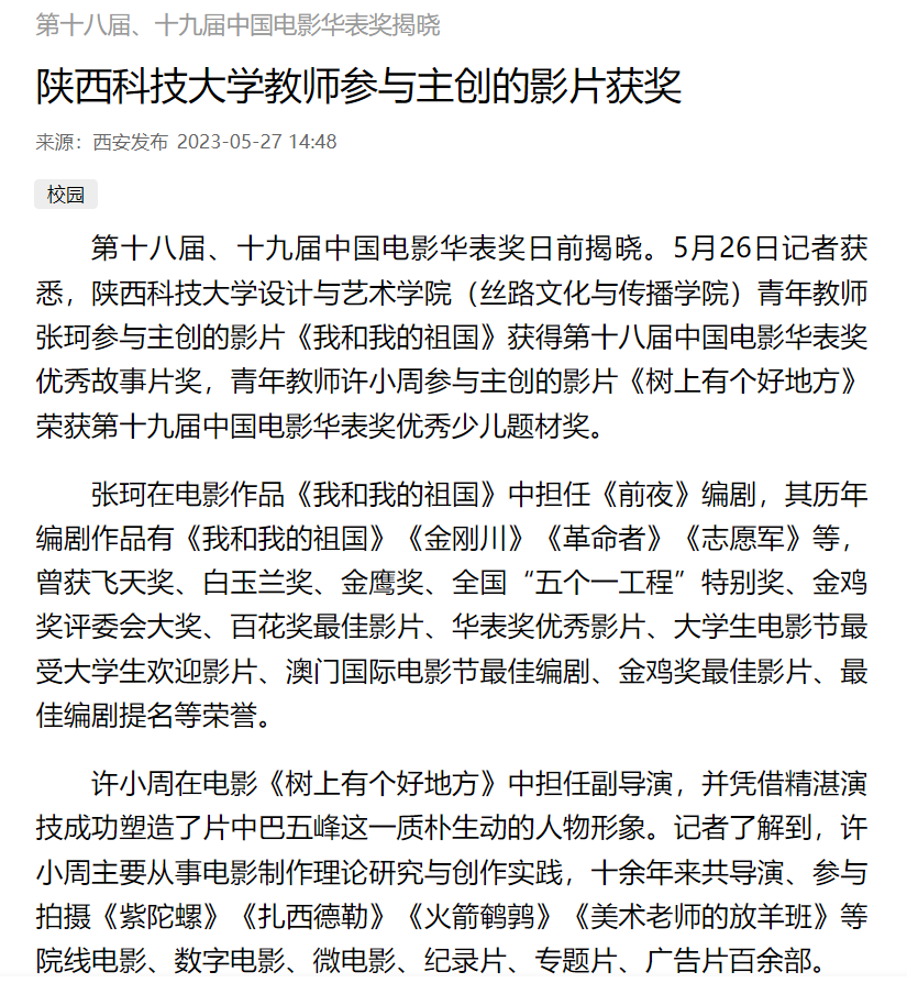 西安發(fā)布:陜西科技大學(xué)教師參與主創(chuàng)的影片獲獎