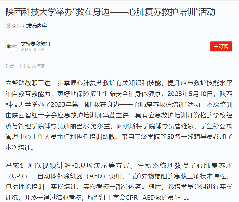 學(xué)習(xí)強(qiáng)國:陜西科技大學(xué)舉辦“救在身邊——心肺復(fù)蘇救護(hù)培訓(xùn)”活動(dòng)