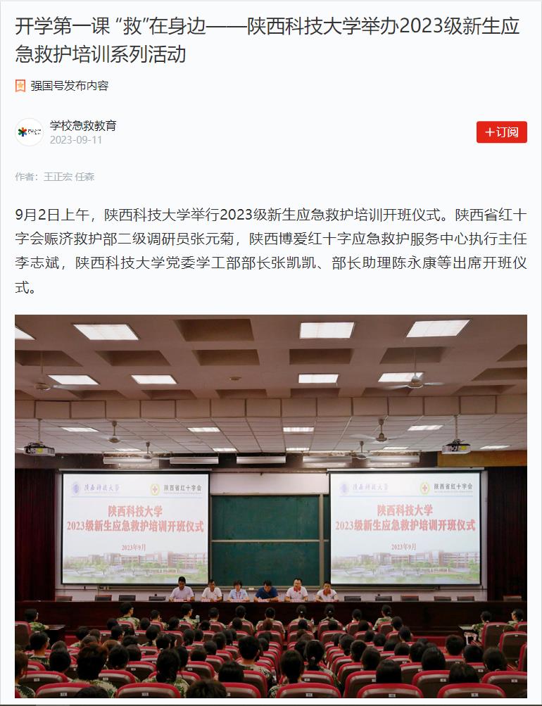 學(xué)習(xí)強國APP:開學(xué)第一課 “救”在身邊——陜西科技大學(xué)舉辦2023級新生應(yīng)急救護(hù)培訓(xùn)系列活動