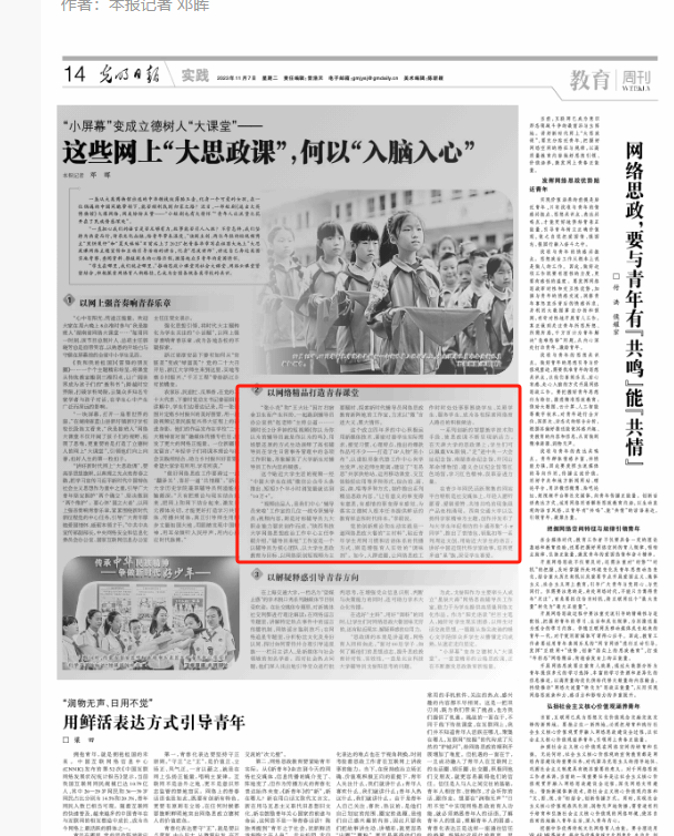 11月7日,《光明日報(bào)》報(bào)道我校網(wǎng)絡(luò)思想政治教育工作。