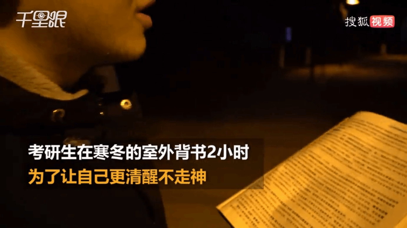 搜狐視頻報(bào)道我校考研生在寒冬的室外背書2小時(shí),為了讓自己更清醒不走神