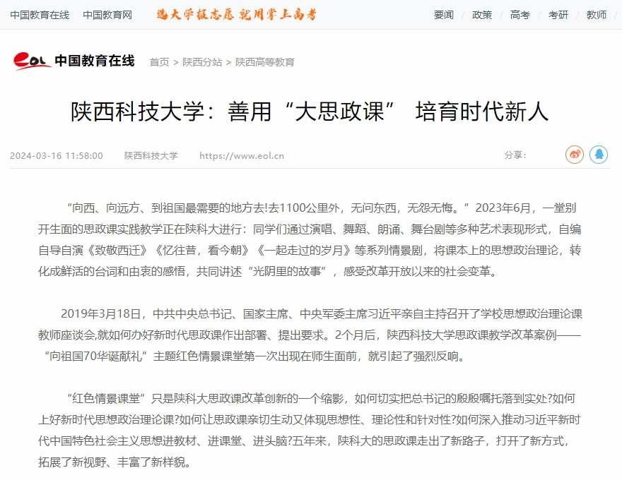 陜西省教育廳官網(wǎng):陜西科技大學(xué):善用“大思政課” 培育時(shí)代新人
