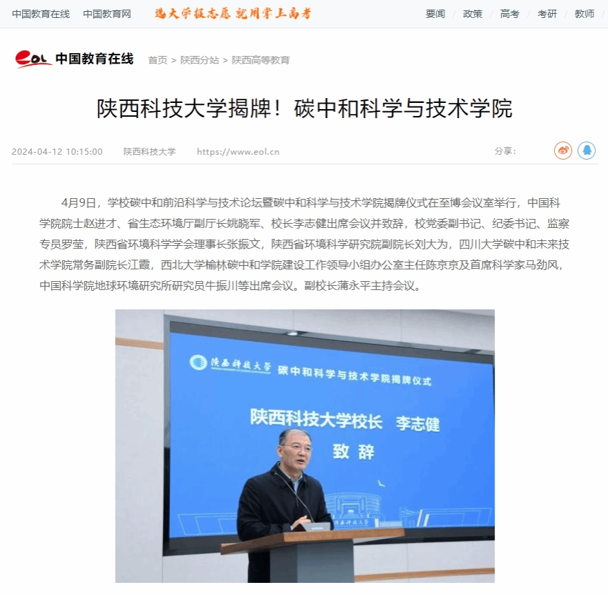 中國(guó)教育在線:陜西科技大學(xué)揭牌!碳中和科學(xué)與技術(shù)學(xué)院