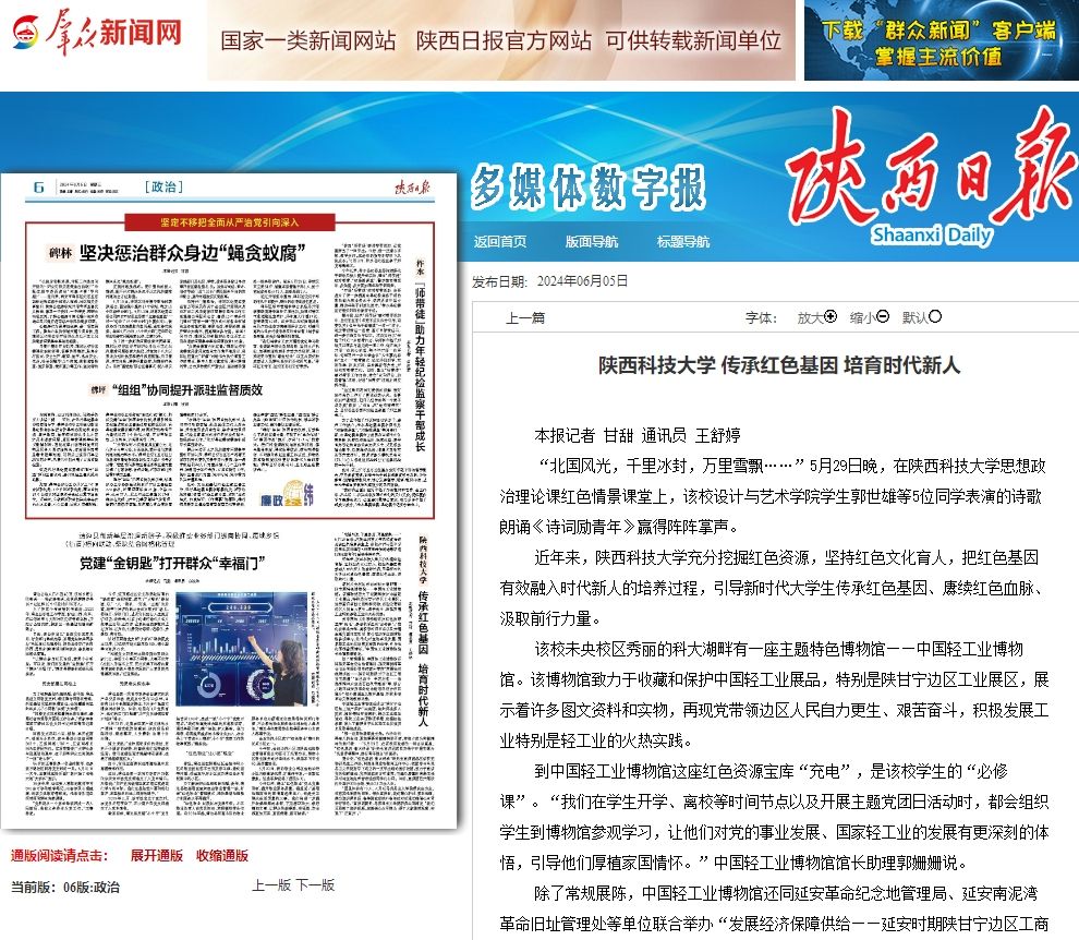 《陜西日報》:陜西科技大學(xué) 傳承紅色基因 培育時代新人