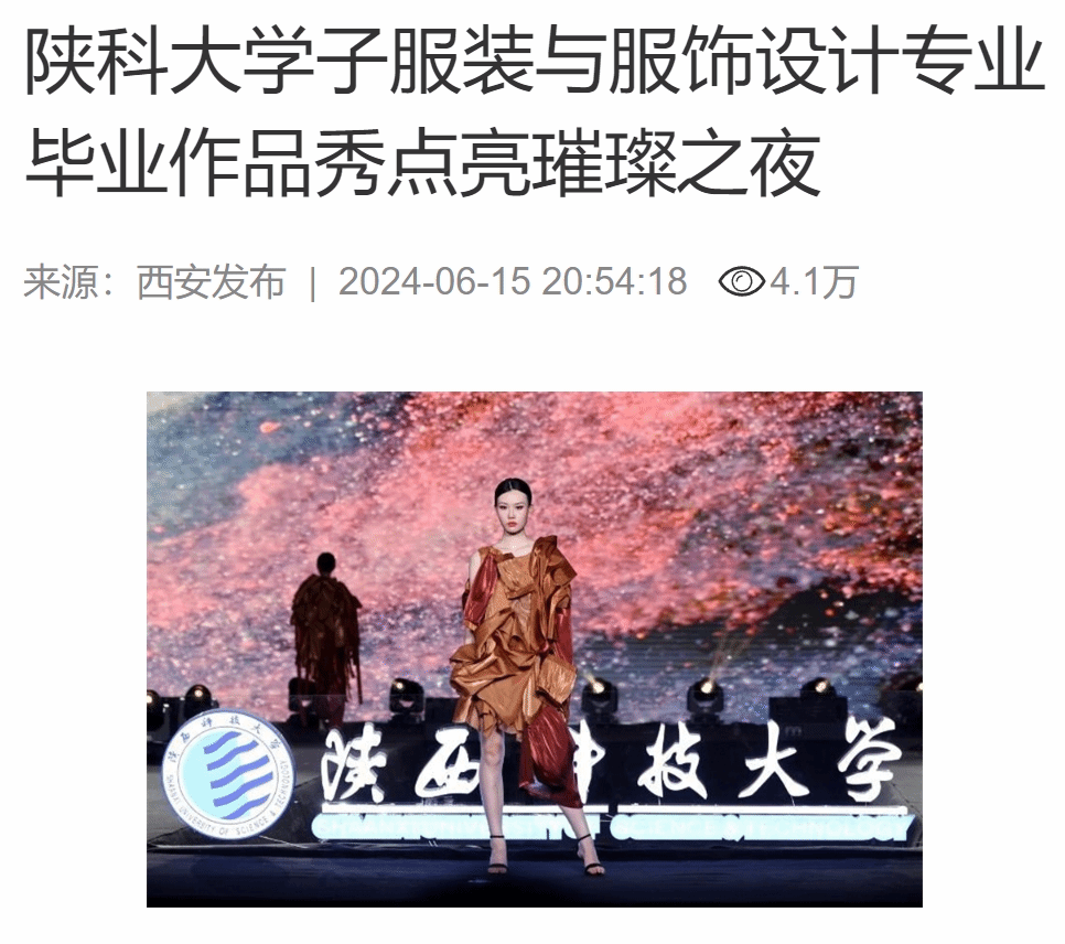 群眾新聞網(wǎng):陜科大學(xué)子服裝與服飾設(shè)計專業(yè)畢業(yè)作品秀點亮璀璨之夜