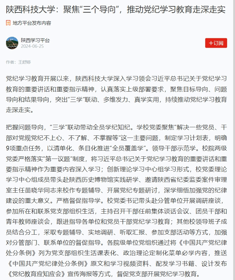 學(xué)習(xí)強國:陜西科技大學(xué):聚焦“三個導(dǎo)向”,推動黨紀(jì)學(xué)習(xí)教育走深走實