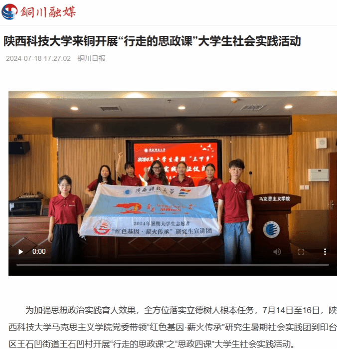 銅川日?qǐng)?bào):陜西科技大學(xué)來(lái)銅開(kāi)展“行走的思政課”大學(xué)生社會(huì)實(shí)踐活動(dòng)