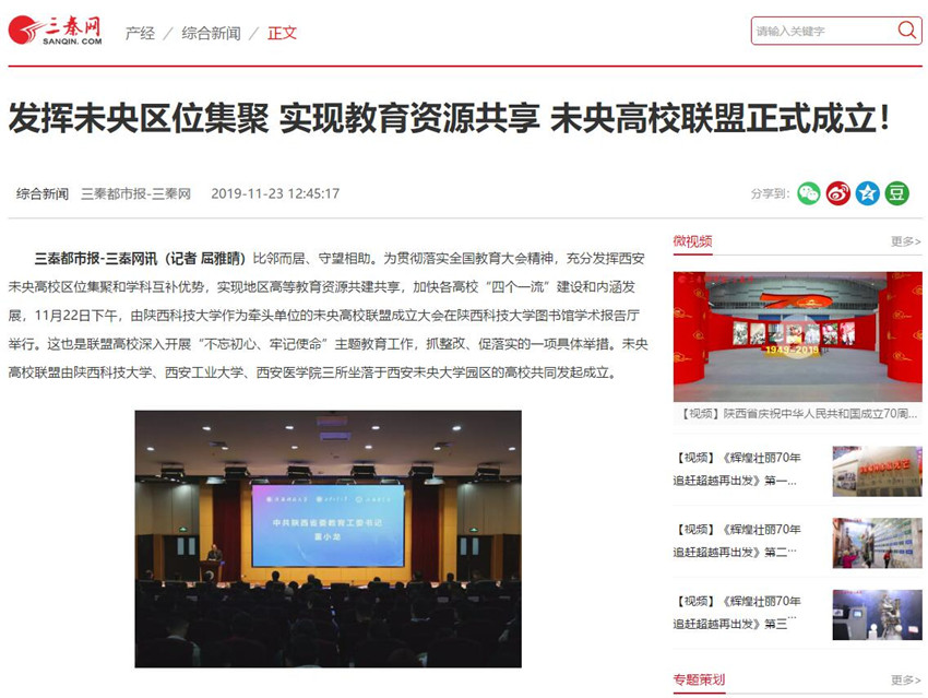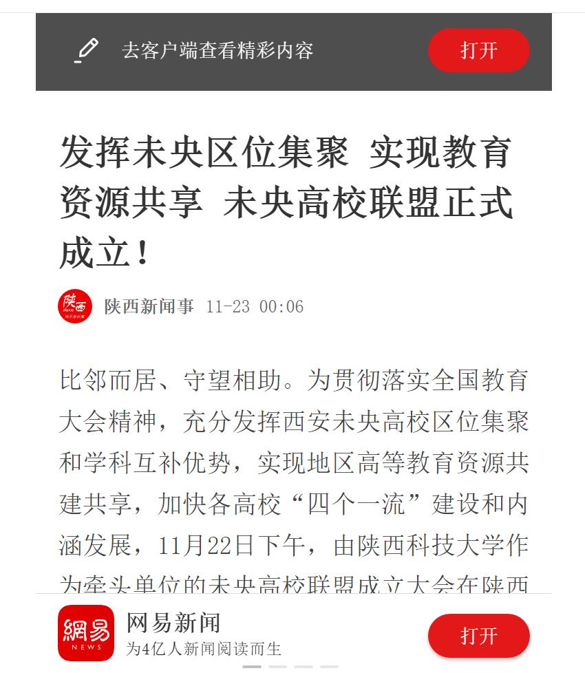 網(wǎng)易新聞:發(fā)揮未央?yún)^(qū)位集聚 實(shí)現(xiàn)教育資源共享 未央高校聯(lián)盟正式成立!