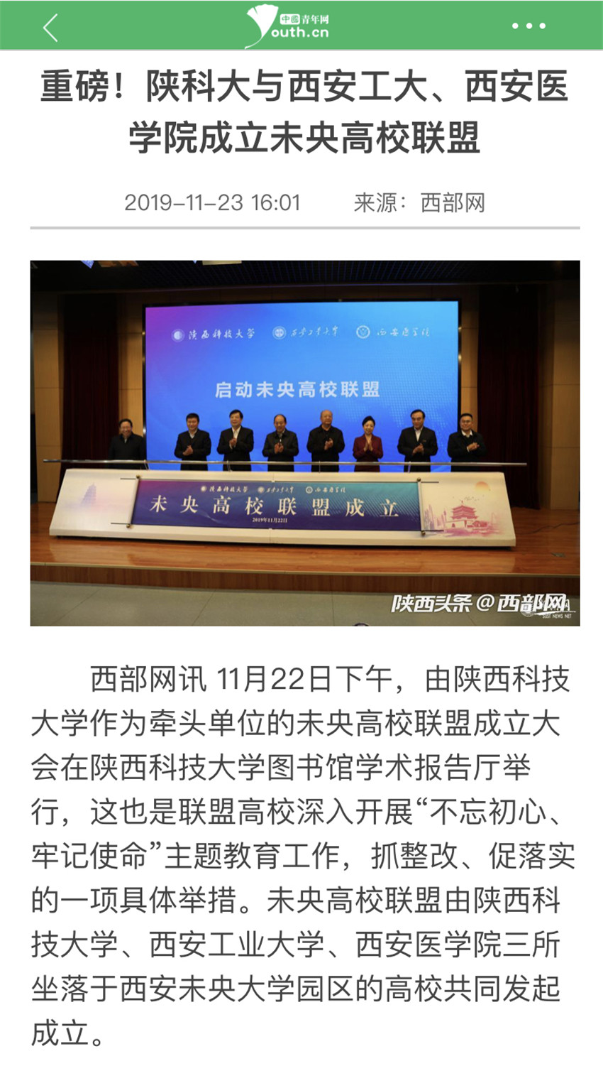 中國(guó)青年網(wǎng):重磅!陜科大與西安工大、西安醫(yī)學(xué)院成立未央高校聯(lián)盟