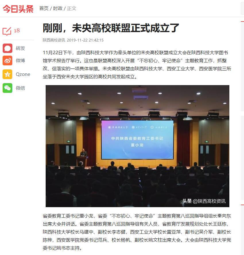 今日頭條:剛剛,未央高校聯(lián)盟正式成立了