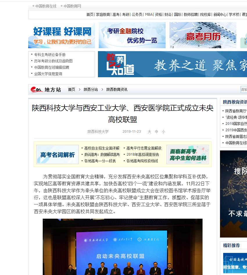 中國(guó)教育網(wǎng):陜西科技大學(xué)與西安工業(yè)大學(xué)、西安醫(yī)學(xué)院正式成立未央高校聯(lián)盟