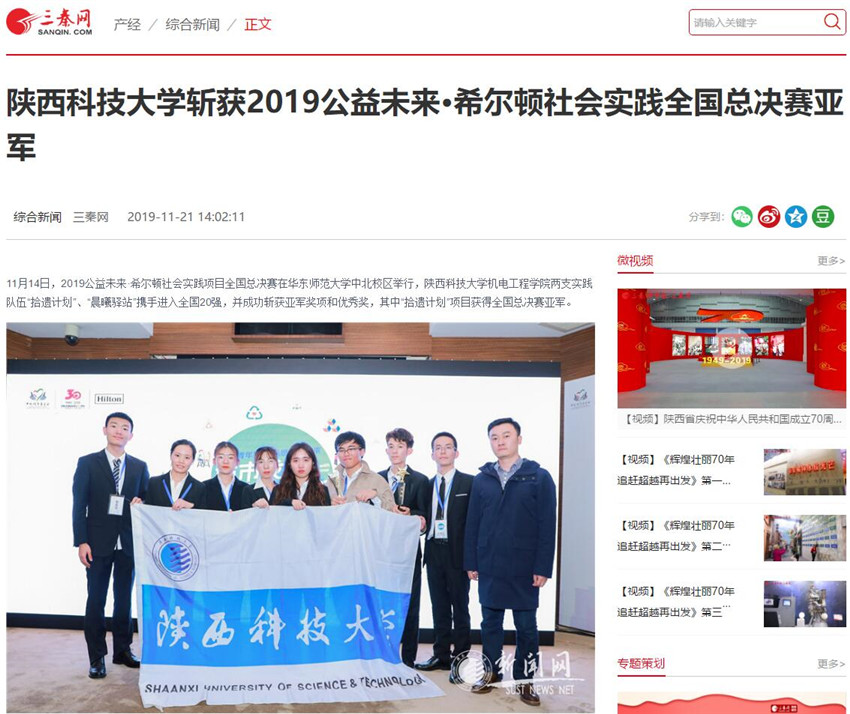 三秦網(wǎng):陜西科技大學斬獲2019公益未來·希爾頓社會實踐全國總決賽亞軍