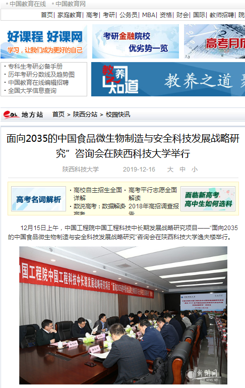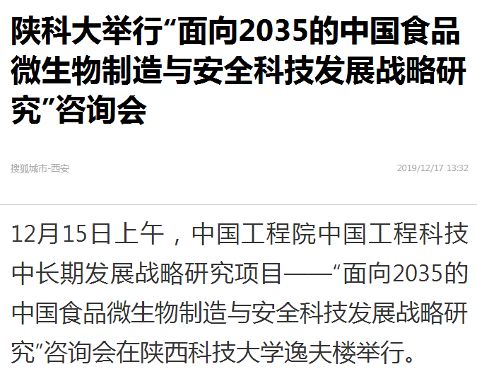 中國教育網(wǎng):面向2035的中國食品微生物制造與安全科技發(fā)展戰(zhàn)略研究”咨詢會在陜西科技大學(xué)舉行