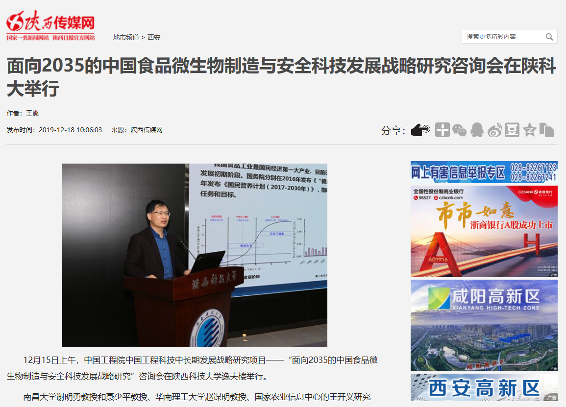 陜西傳媒網(wǎng):面向2035的中國食品微生物制造與安全科技發(fā)展戰(zhàn)略研究咨詢會在陜科大舉行