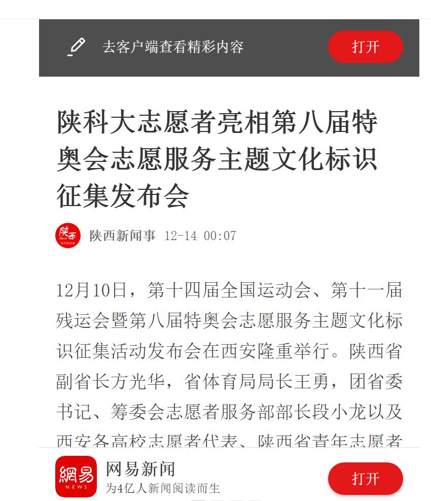 網(wǎng)易新聞APP:陜科大志愿者亮相第八屆特奧會志愿服務主題文化標識征集發(fā)布會