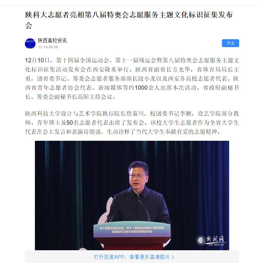 百度APP:陜科大志愿者亮相第八屆特奧會志愿服務主題文化標識征集發(fā)布會