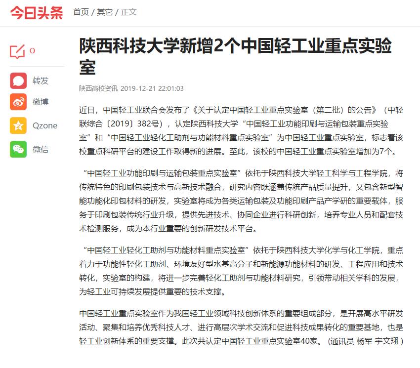 今日頭條APP:陜西科技大學(xué)新增2個(gè)中國輕工業(yè)重點(diǎn)實(shí)驗(yàn)室