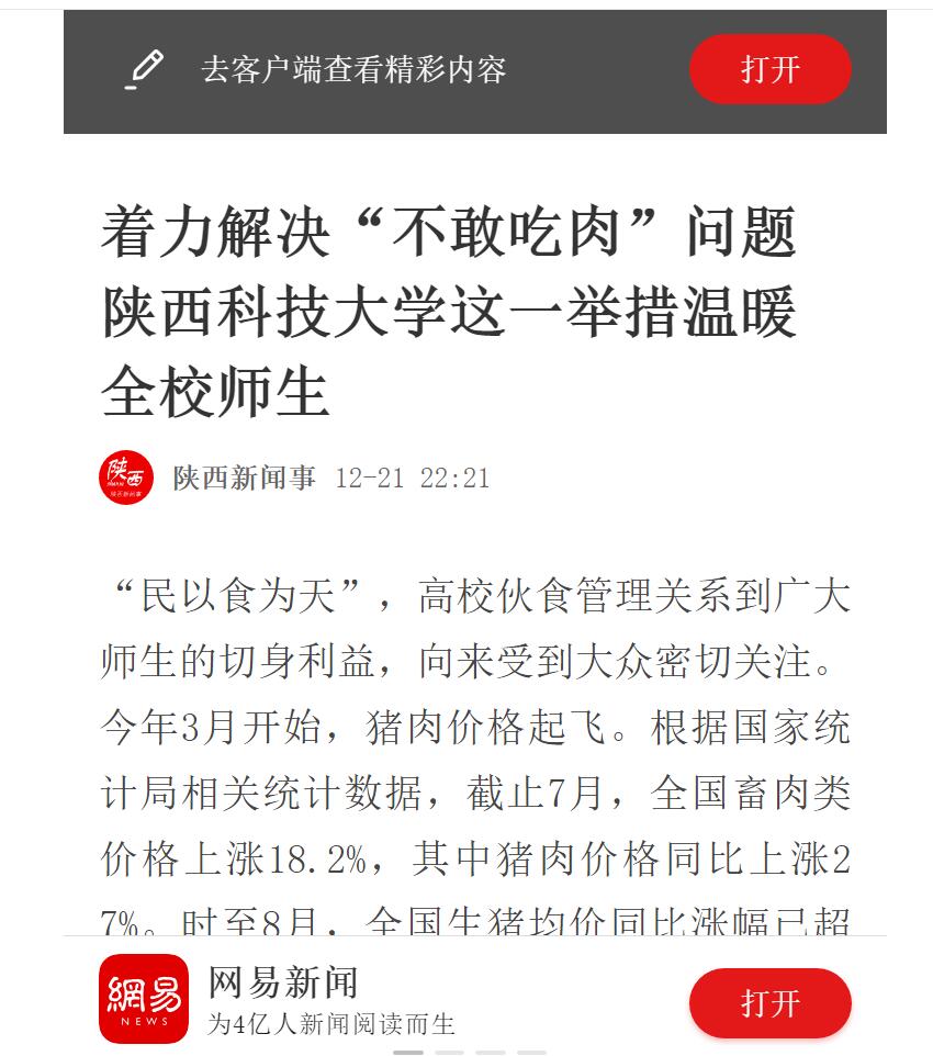 網(wǎng)易新聞APP:著力解決“不敢吃肉”問題 陜西科技大學(xué)這一舉措溫暖全校師生