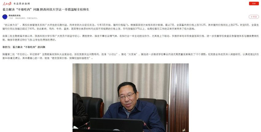 人民日報(bào)APP:著力解決“不敢吃肉”問題 陜西科技大學(xué)這一舉措溫暖全校師生