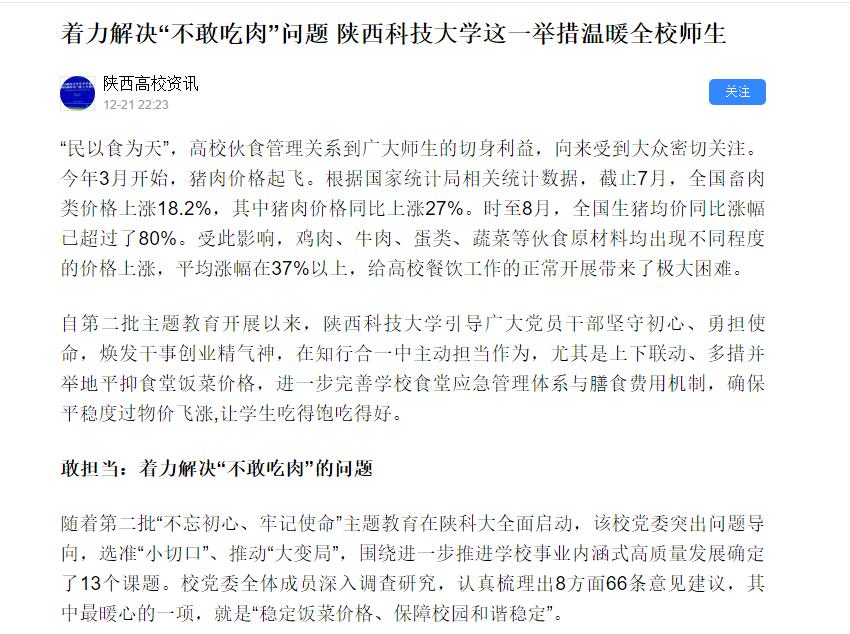 陜西傳媒網(wǎng):著力解決“不敢吃肉”問題 陜西科技大學(xué)這一舉措溫暖全校師生