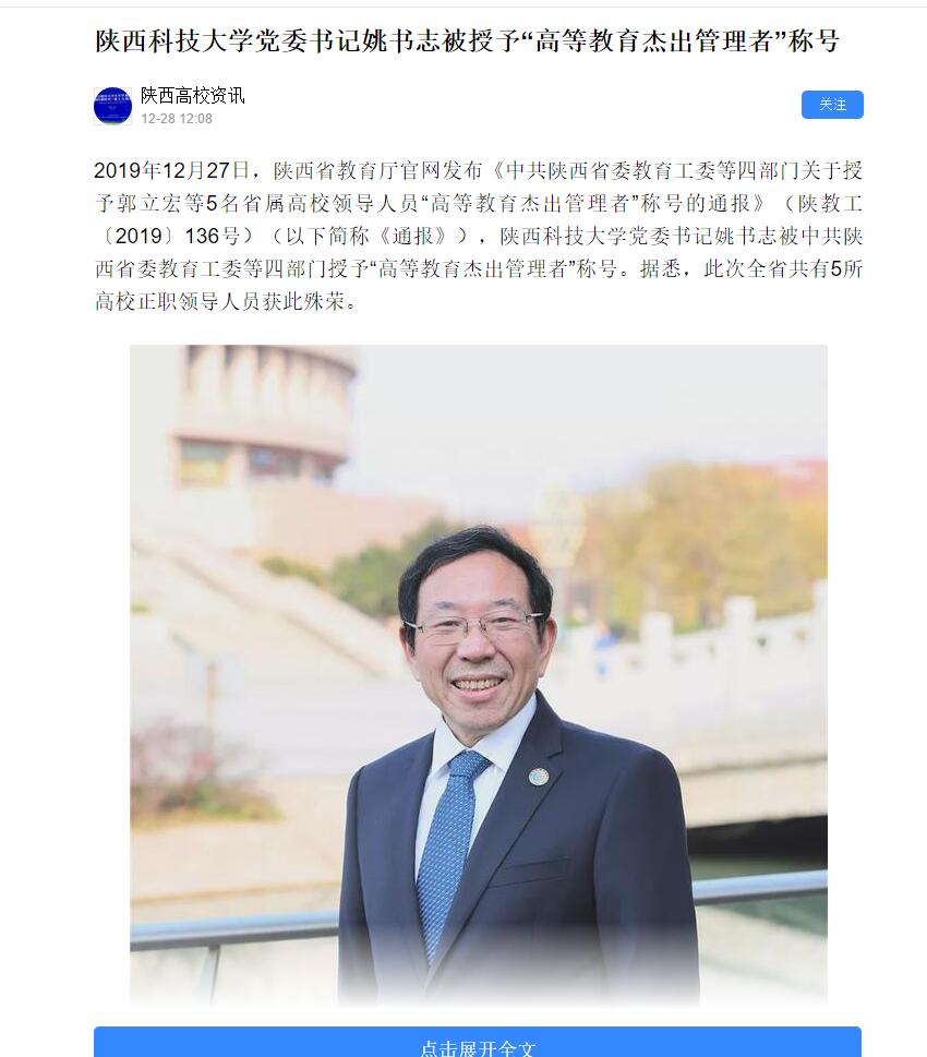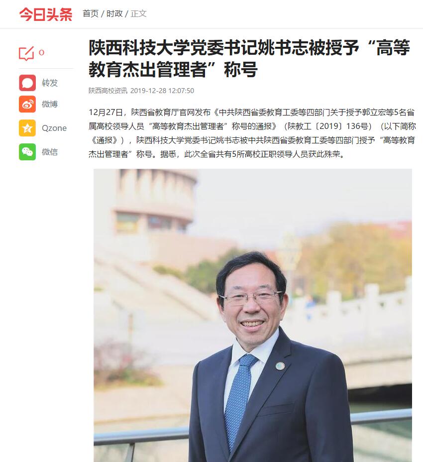 今日頭條APP:陜西科技大學(xué)黨委書(shū)記姚書(shū)志被授予“高等教育杰出管理者”稱(chēng)號(hào)