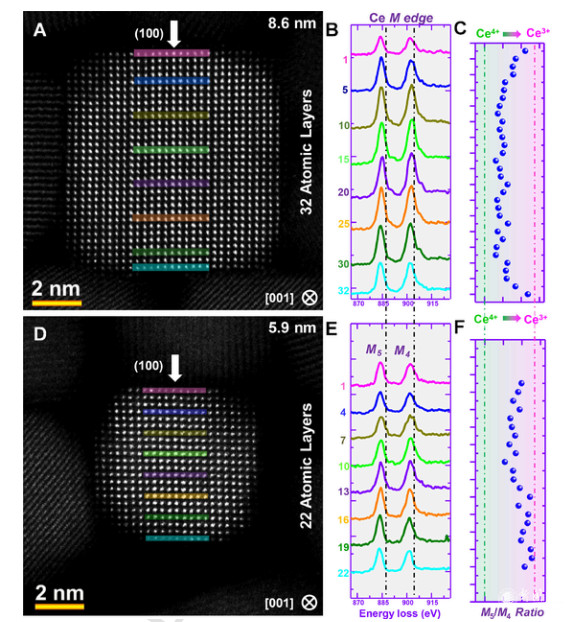 STEM-EELS逐層定量地研究了Cr摻雜CeO2納米晶中各原子層的價(jià)態(tài)分布