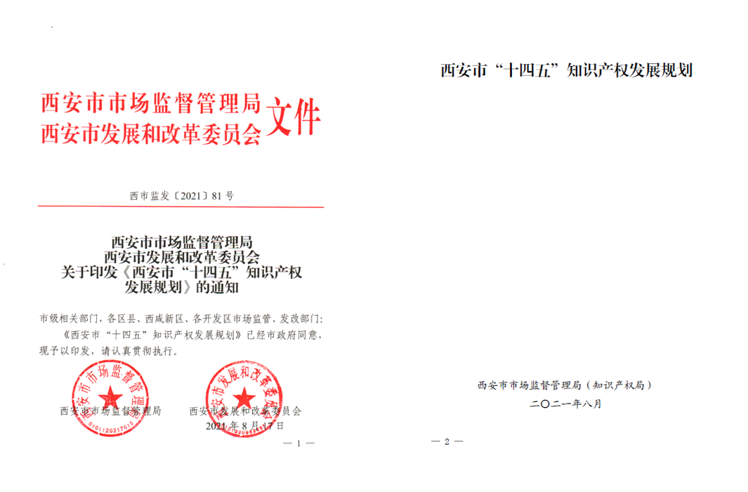 近日,西安市市場監(jiān)督管理局(西安市知識產(chǎn)權(quán)局)、西安市發(fā)展和改革委員會印發(fā)《西安市“十四五”知識產(chǎn)權(quán)發(fā)展規(guī)劃》(以下簡稱《規(guī)劃》),全面總結(jié)“十三五”知識產(chǎn)權(quán)工作,安排部署全市“十四五”知識產(chǎn)權(quán)工作。