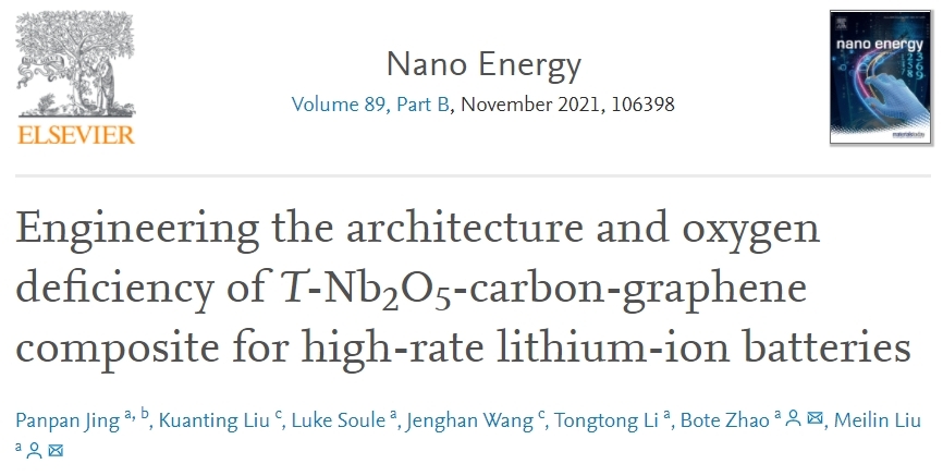 電動(dòng)汽車(chē)(EV)的快速發(fā)展是當(dāng)下地面交通運(yùn)輸領(lǐng)域變革的最顯著標(biāo)志。然而,人們?cè)谌胧蛛妱?dòng)汽車(chē)時(shí),優(yōu)先考慮的是其“續(xù)航里程”“充電效率”和“功率輸出”,而作為電動(dòng)汽車(chē)的“心臟”,鋰離子電池的性能無(wú)疑是影響電動(dòng)汽車(chē)上述特性的最重要因素之一。為此,景盼盼博士等人基于晶格氧空位和2D層狀結(jié)構(gòu),開(kāi)發(fā)了具有超高倍率特性(a capacity of 114 mAh/g obtained at 100 C or 20 A/g)和超長(zhǎng)循環(huán)穩(wěn)定性(a capacity of 147 mAh/g obtained at 5C for 1,500 cycles and 107 mAh/g obtained at 50 C for 5,000 cycles)的T-Nb2O5-Carbon-Graphene鋰離子電池負(fù)極材料,并揭示了T-Nb2O5的晶格氧空位能夠有效提升整個(gè)復(fù)合材料的電子電導(dǎo)和鋰離子的擴(kuò)散動(dòng)力學(xué)特性。此研究工作是景盼盼博士在美國(guó)佐治亞理工學(xué)院留學(xué)期間與Prof. Meilin Liu(Hightower Endowed Chair and Regents' Professor,H-index:135)和Dr. Bote Zhao(現(xiàn)為華南理工大學(xué)教授)共同合作完成。