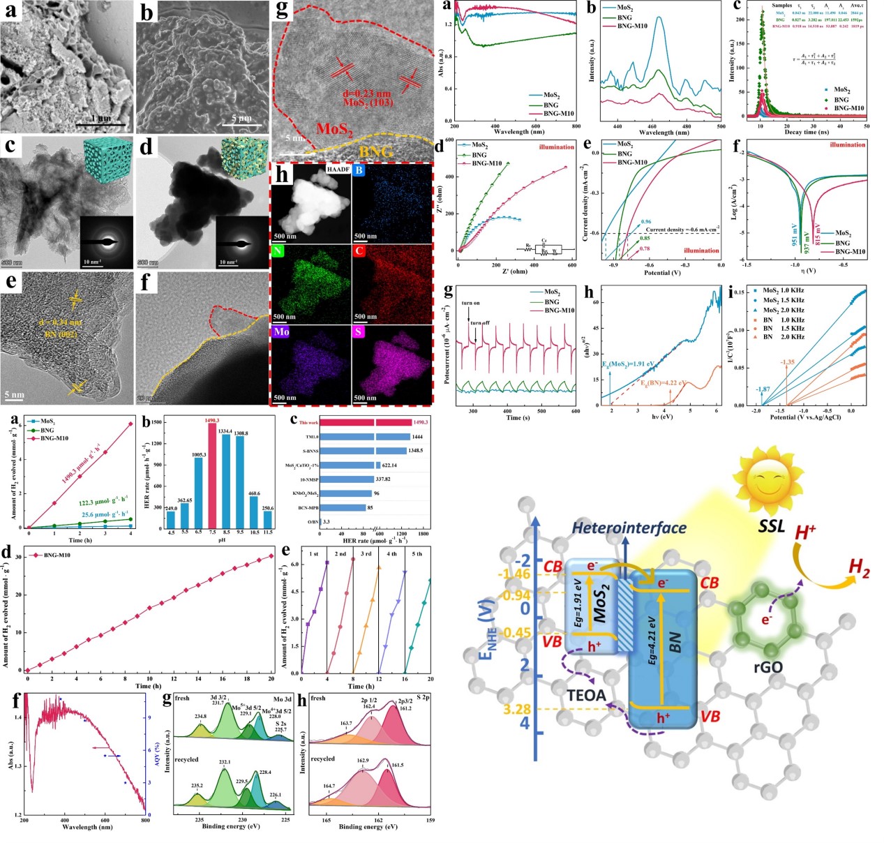 三維(3D)多孔BN/rGO骨架穩(wěn)定的MoS2復(fù)合光催化劑制備及產(chǎn)氫性能研究(Chem. Eng. J. 435 (2022) 132441)