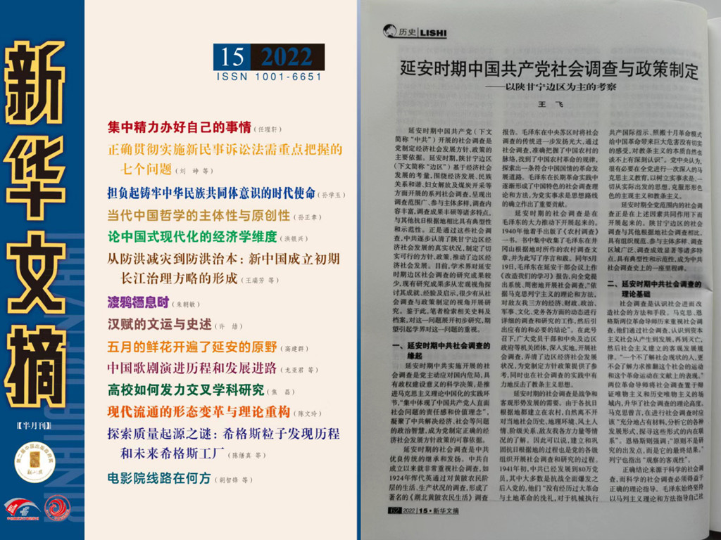 我校馬克思主義學院王飛教授發(fā)表在《貴陽學院學報》2022年第2期上的論文《延安時期中國共產(chǎn)黨社會調(diào)查與政策制定》,被《新華文摘》2022年第15期全文轉載。