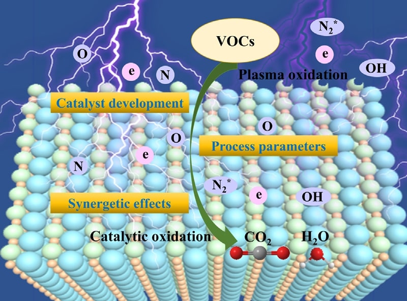 常甜副教授在環(huán)境領域TOP期刊Science of the Total Environment上發(fā)表了關于揮發(fā)性有機物(VOCs)處理技術的綜述性論文。VOCs主要來源于工業(yè)廢氣、汽車尾氣、吸煙、采暖和烹調(diào)等過程,大部分VOCs具有毒性,嚴重威脅生態(tài)環(huán)境和人類健康。開發(fā)綠色高效的VOCs污染控制技術成為當前國內(nèi)外的研究熱點。成果系統(tǒng)介紹了近10年來等離子體協(xié)同催化技術在VOCs去除領域的研究進展,涵蓋了體系中催化劑種類、關鍵影響因素、副產(chǎn)物的產(chǎn)生和反應機理等,同時還比較了等離子體催化技術對不同VOCs的去除性能,特別是催化劑的設計以及等離子體與催化劑之間的協(xié)同效應。全面闡釋了等離子體協(xié)同催化去除VOCs的研究進展及二者的協(xié)同機制,為該領域未來的研究提供理論參考。