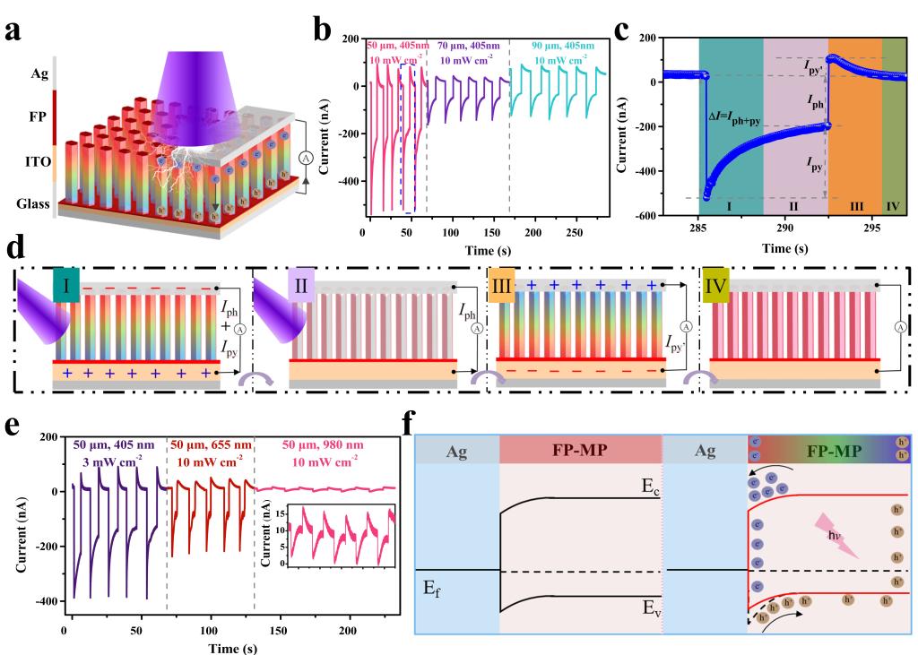 該工作基于無(wú)定型紅磷的自組裝策略,構(gòu)建了“自下而上”合成宏觀(guān)尺寸的纖維磷微米柱陣列并用于光電探測(cè)。許并社教授團(tuán)隊(duì)構(gòu)建了無(wú)定型紅磷結(jié)構(gòu)的定向轉(zhuǎn)變,實(shí)現(xiàn)了大面積、高質(zhì)量纖維磷微米柱陣列的可控制備,進(jìn)一步發(fā)展纖維磷在光電子集成方面的應(yīng)用,為晶體磷同素異形體微納結(jié)構(gòu)的制備提供了一種新的策略。