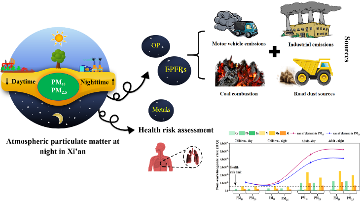 研究指出西安作為中國西北最大的城市,近年來空氣質(zhì)量得到了很大改善,但隨著步入大氣污染治理新階段、也正面臨著眾多新的挑戰(zhàn)。該項研究發(fā)現(xiàn)西安地區(qū)大氣PM2.5中含有除重金屬、碳質(zhì)組分等常規(guī)健康風(fēng)險物質(zhì)外,還含有新型健康風(fēng)險物質(zhì)長壽命自由基,它們共同對空氣健康造成潛在危害。該地區(qū)顯著的一個污染特征是大氣PM2.5在夜晚絕對濃度和絕對健康風(fēng)險都較白天顯著升高,這個現(xiàn)象歸因于晝夜變化的氣象條件和污染來源的改變,夜晚應(yīng)該針對性的進行源頭管控。沙塵暴對西安市空氣質(zhì)量和呼吸健康造成驟然影響,健康風(fēng)險可以提高數(shù)倍甚至數(shù)十倍,沙塵天氣的危害可能比冬季霧霾時期更值得人們注意。研究最后對大氣PM2.5以及健康風(fēng)險物質(zhì)的來源進行了詳細解析,并根據(jù)結(jié)果提出了針對西安地區(qū)空氣健康危害消減的大氣污染治理措施。