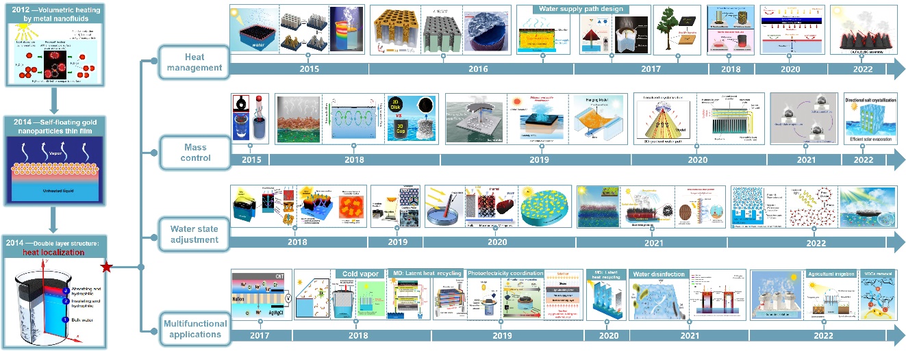 有鑒于此,王成兵教授團(tuán)隊(duì)聯(lián)合浙江海洋大學(xué)徐興濤教授和澳大利亞昆士蘭大學(xué)Yusuke Yamauchi教授以“Water Activation in Solar-Powered Vapor Generation”為題在Advanced Materials發(fā)表了相關(guān)綜述論文。王成兵教授、徐興濤教授和Yusuke Yamauchi教授為論文通訊作者,碩士研究生衛(wèi)丹為論文第一作者。陜西科技大學(xué)為第一通訊單位。衛(wèi)丹為我校2021級(jí)碩士研究生,目前在Advanced Materials、AdvancedEnergyMaterials和GlobalChallenges上發(fā)表SCI論文3篇,授權(quán)國(guó)家發(fā)明專(zhuān)利1項(xiàng),先后獲得中國(guó)國(guó)際互聯(lián)網(wǎng)+大學(xué)生創(chuàng)新創(chuàng)業(yè)大賽國(guó)家銅獎(jiǎng)、中國(guó)研究生能源裝備創(chuàng)新設(shè)計(jì)大賽國(guó)家一等獎(jiǎng)、“奧福環(huán)?!眱?yōu)秀研究生等榮譽(yù)稱(chēng)號(hào)。