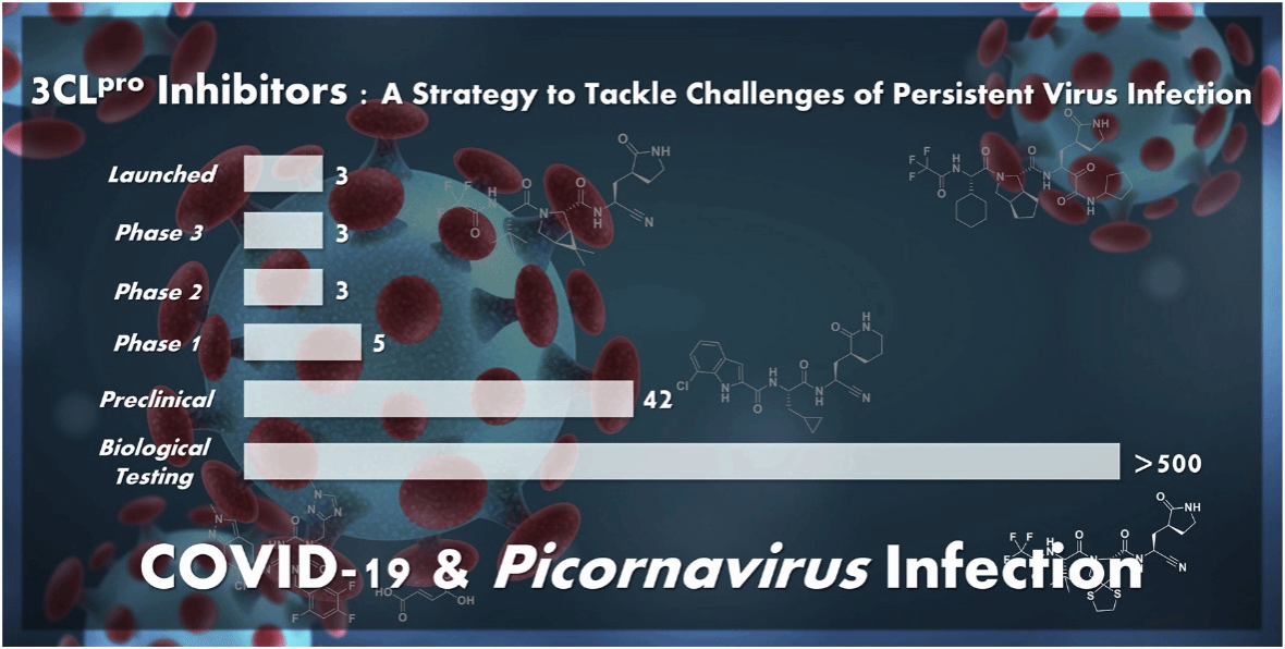 【成果一】冠狀病毒3CL蛋白酶抑制劑開發(fā):應(yīng)對持續(xù)病毒感染挑戰(zhàn)的策略。Development of de-novo coronavirus 3-chymotrypsin-like protease (3CLpro) inhibitors since COVID-19 outbreak: A strategy to tackle challenges of persistent virus infection.