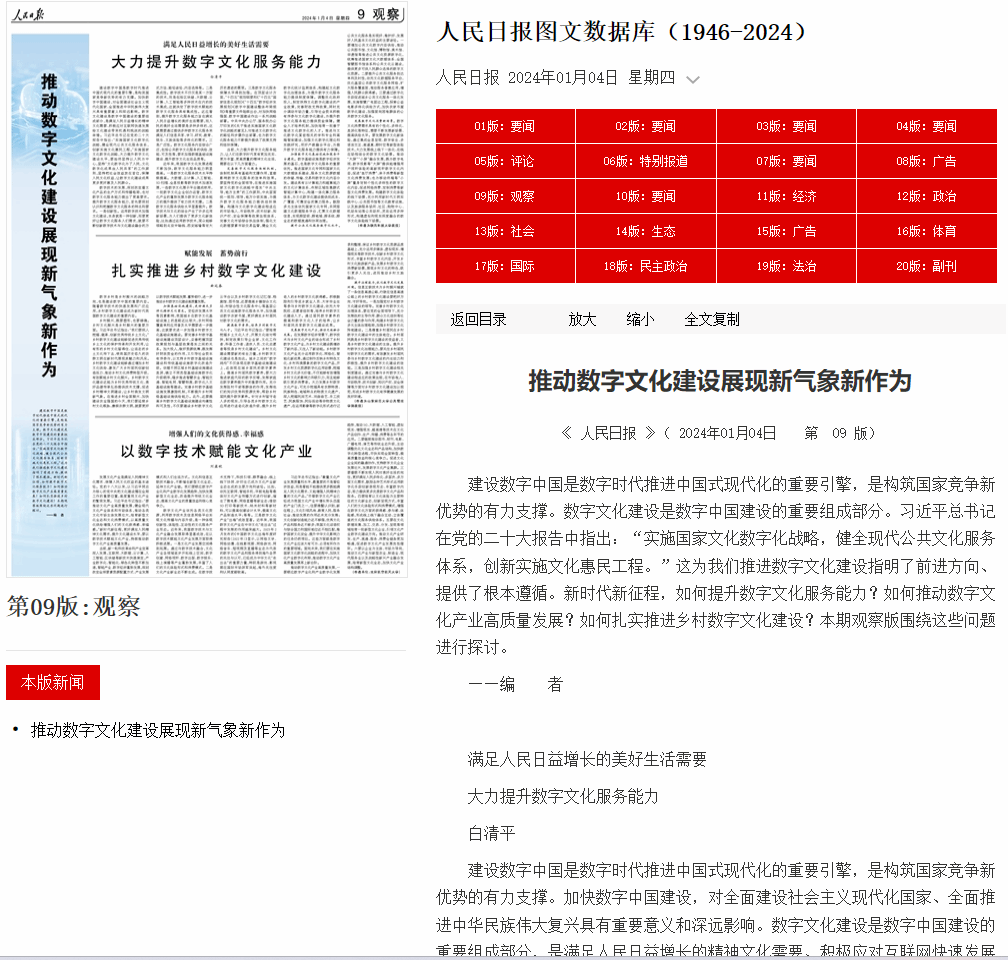 《人民日報(bào)》:《推動(dòng)數(shù)字文化建設(shè)展現(xiàn)新氣象新作為》