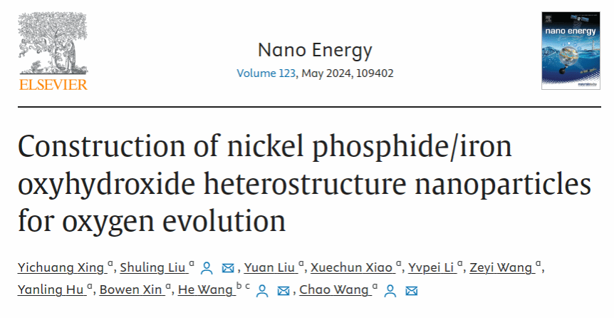 近日,我?;瘜W(xué)與化工學(xué)院劉淑玲教授團(tuán)隊(duì)在電解水制氫領(lǐng)域得重要進(jìn)展,相關(guān)成果以“Construction of nickel phosphide/iron oxyhydroxide heterostructure nanoparticles for oxygen evolution”為題,發(fā)表在國(guó)際知名期刊Nano Energy(IF=17.6)上。我校碩士研究生邢一創(chuàng)為第一作者,劉淑玲教授、王超副教授、中科院山西煤化所王鶴助理研究員為論文共同通訊作者,陜西科技大學(xué)為第一通訊單位。