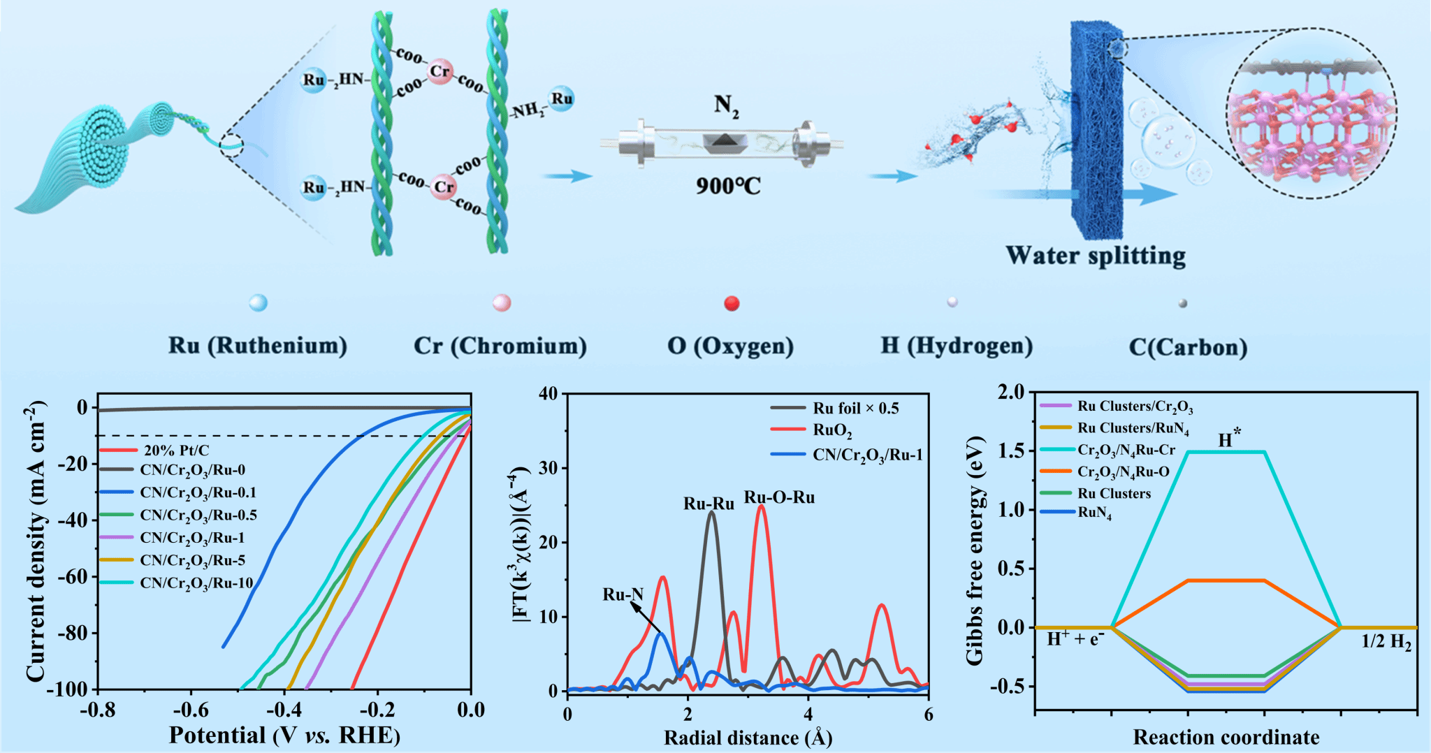 CN/Cr2O3/Ru-X電催化劑的制備原理示意圖及其在堿性(pH = 14)中的HER性能