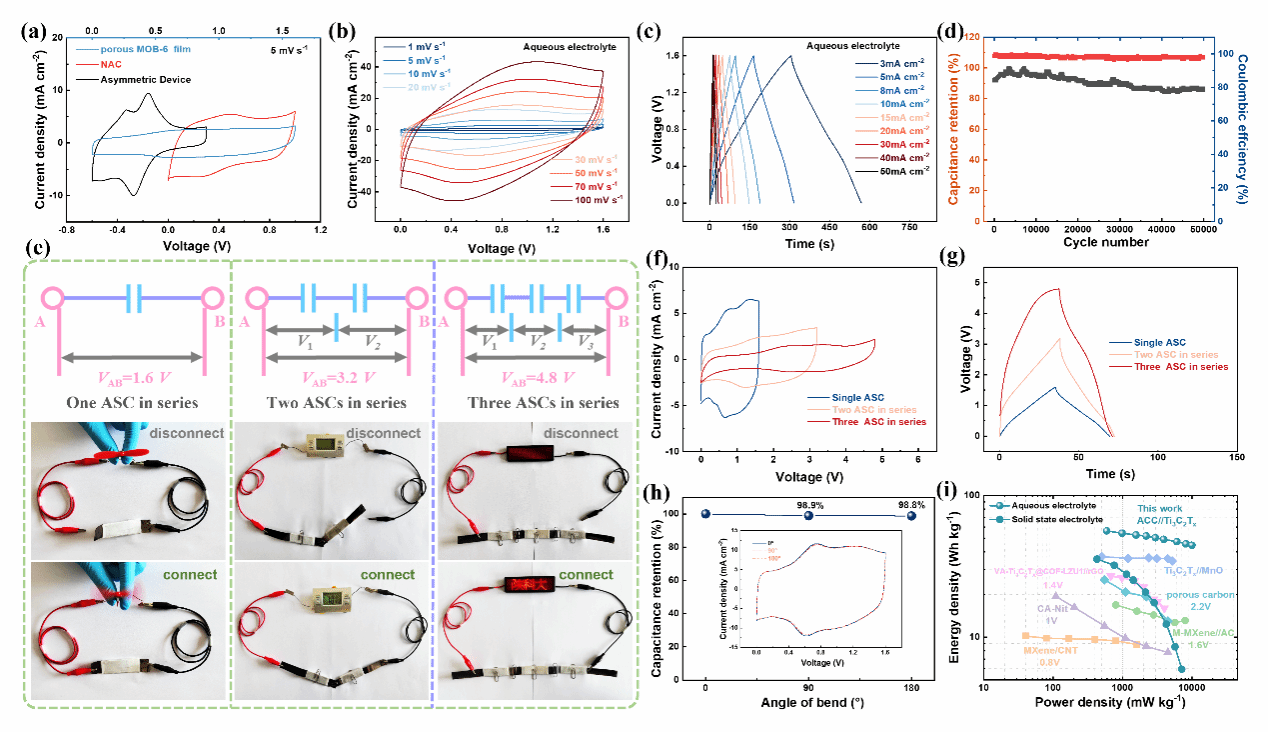非對稱超級電容器電化學性能及應(yīng)用示意圖