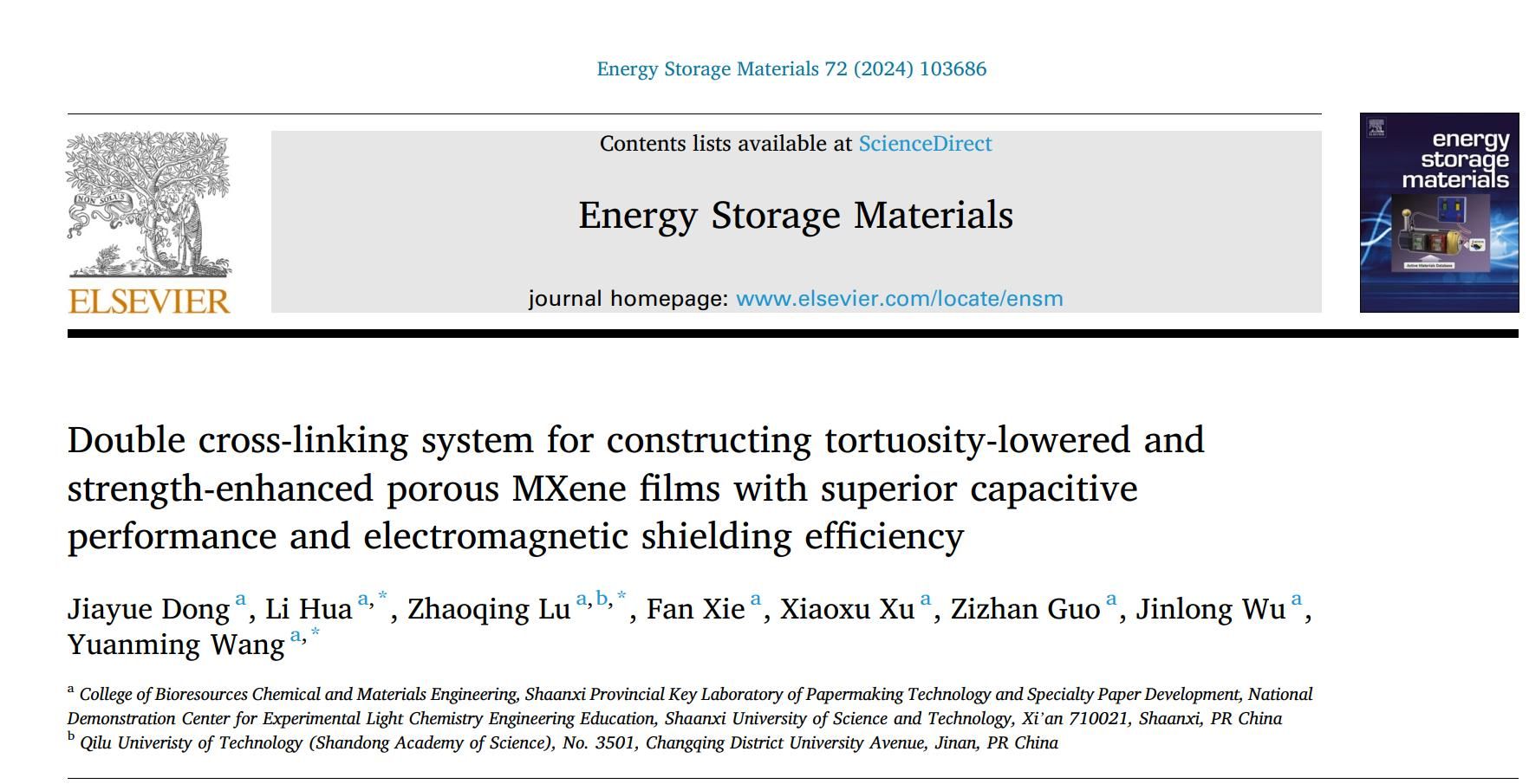為了解決上述問題,陜西科技大學陸趙情教授團隊通過離子分子雙交聯(lián)體系設(shè)計和凍干干燥工藝,構(gòu)建了具有低曲率和高強度的三維結(jié)構(gòu)的柔性多孔MXene薄膜材料。該項工作從材料的的表面終端基團、層間距和定向結(jié)構(gòu)角度優(yōu)化了多孔材料的物理化學性質(zhì),并為制備輕質(zhì)高強的柔性儲能材料和電磁屏蔽材料提供了新思路。相關(guān)工作在《Energy Storage Materials》(IF:18.9)以“Double cross-linking system for constructing tortuosity-lowered and strength-enhanced porous MXene films with superior capacitive performance and electromagnetic shielding efficiency”為題發(fā)表。