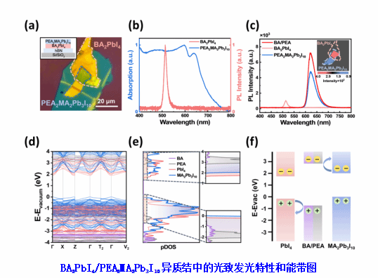 半導(dǎo)體II 型異質(zhì)結(jié)是光電器件(如光伏器件和光電探測(cè)器件)中的關(guān)鍵組成部分。傳統(tǒng)理論認(rèn)為層間電荷轉(zhuǎn)移是半導(dǎo)體 II 型異質(zhì)結(jié)中主要的載流子弛豫機(jī)制。韓斌副教授帶領(lǐng)碩士生邱琪、湯言韌等人結(jié)合實(shí)驗(yàn)和理論計(jì)算證明了在由二維有機(jī)-無(wú)機(jī)雜化鈣鈦礦構(gòu)成的 II 型異質(zhì)結(jié)中,載流子弛豫機(jī)制可由電荷轉(zhuǎn)移轉(zhuǎn)變?yōu)槟芰哭D(zhuǎn)移,且無(wú)需額外的電荷阻擋層。研究結(jié)果顯示,在具有相同有機(jī)間隔層的二維鈣鈦礦異質(zhì)結(jié)中,如BA2PbI4/BA2MA2Pb3I10異質(zhì)結(jié),電荷轉(zhuǎn)移占主導(dǎo)地位。然而,當(dāng)將異質(zhì)結(jié)其中一層中的有機(jī)間隔層BA替換為PEA時(shí),即形成BA2PbI4/PEA2MA2Pb3I10時(shí),載流子弛豫過(guò)程就從電荷轉(zhuǎn)移轉(zhuǎn)變?yōu)槟芰哭D(zhuǎn)移。盡管這兩種異質(zhì)結(jié)都是 II 型能帶排列,但密度泛函理論計(jì)算表明,用PEA取代BA會(huì)形成一種新型的 II 型能帶結(jié)構(gòu)。這種新的能帶結(jié)構(gòu)抑制了電子和空穴的分離,從而使得能量轉(zhuǎn)移比電荷轉(zhuǎn)移更占優(yōu)勢(shì)。這項(xiàng)研究不僅為半導(dǎo)體異質(zhì)結(jié)中層間載流子弛豫動(dòng)力學(xué)提供了重要見(jiàn)解,而且對(duì)于未來(lái)基于二維有機(jī)-無(wú)機(jī)雜化鈣鈦礦光電器件的設(shè)計(jì)也至關(guān)重要。