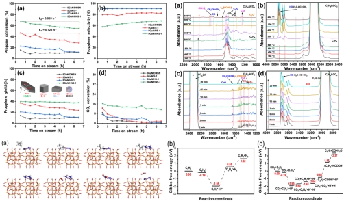 圖1. GaN/片狀多級(jí)孔分子篩催化CO2-ODHP性能和機(jī)理