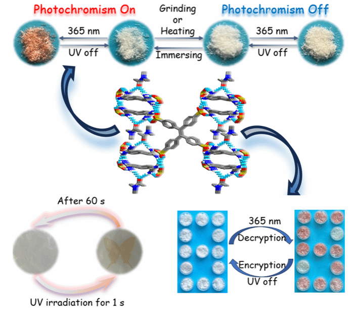 相關(guān)成果以“A solvent-controlled photoresponsive ionic hydrogen-bonded organic framework for encryption applications”為題,發(fā)表在Chemical Communications上(IF = 4.3,自然指數(shù)期刊)上。陜西科技大學為唯一通訊單位,化學與化工學院2021級碩士研究生黃明峰為論文的第一作者,曹麗慧教授為唯一通訊作者。